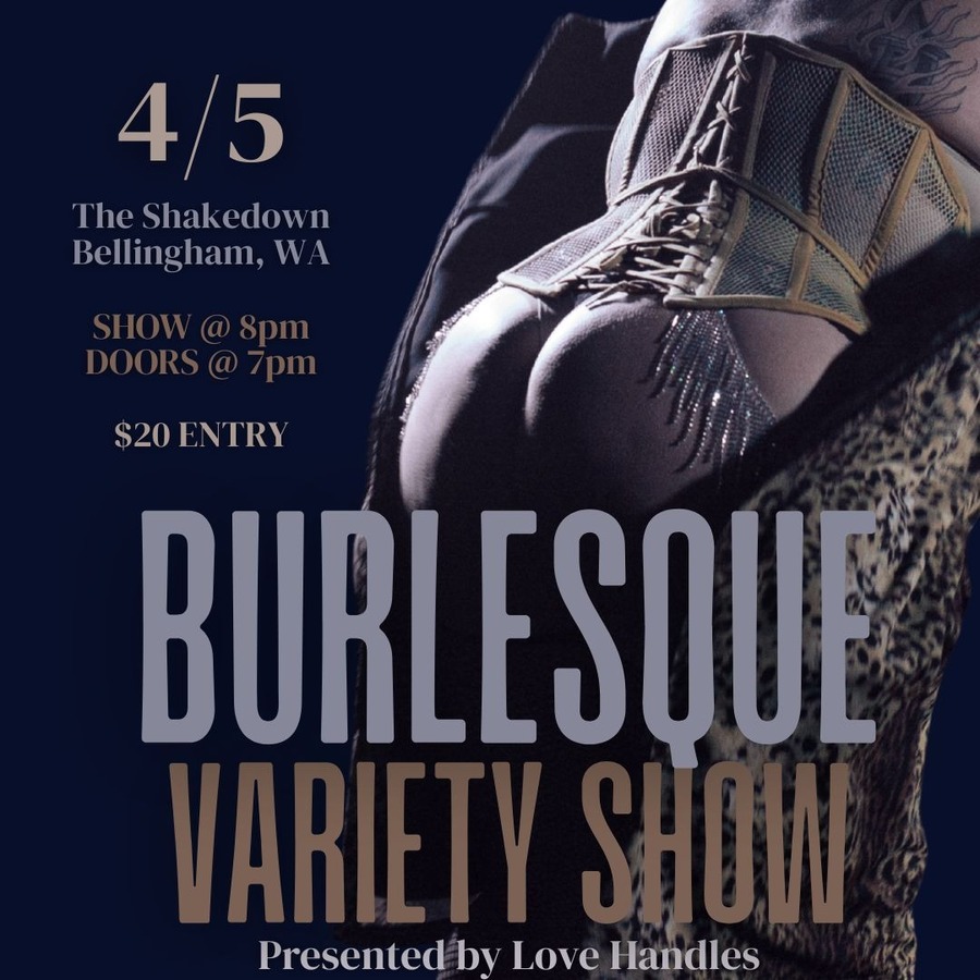 Love Handles proudly presents another Burlesque Variety Show! A sexy, after hours Easter escapade. Haven Eden will be on the mic enchanting you between acts, and guiding you through this evening of delights. Performers from Bellingham, Seattle, Tacoma, and Vancouver BC are ready to show you their best and their favorite acts. Two amazing vendors will be at the merch booth so you can shop for your own showgirl essentials! Mo's Parlor with the best cosmetics and skincare, and Kali Duality with stunning rhinestone pasties. Bring cash to throw! Tips let us know you like what we've brought for you. Our shows center fat joy, so come ready to celebrate the jiggle!CAST LIST:ASH - Vancouver, BCEster Pine - BellinghamHaven Eden (emcee) - TacomaKoshka Killawatt - Bellingham Mademoiselle Amelia - Bellingham Teddymama - SeattleVivian Harlow - BellinghamStage Kittens: Nova Xolo & Venus DivineVendor Partners: Mo's Parlor & Kali Duality